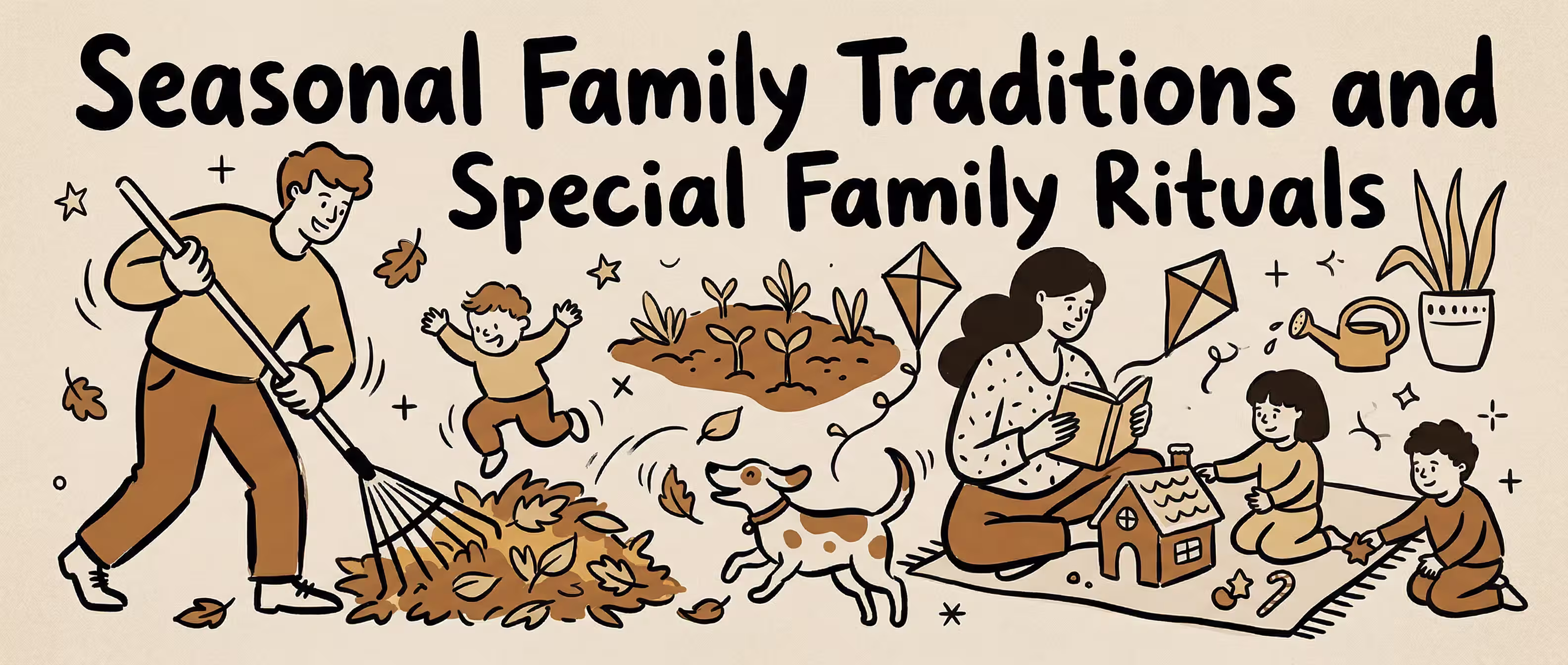 Practical examples of family rituals you can start this week. From daily dinner traditions to seasonal celebrations, these simple rituals build connection and give your family something worth holding onto.