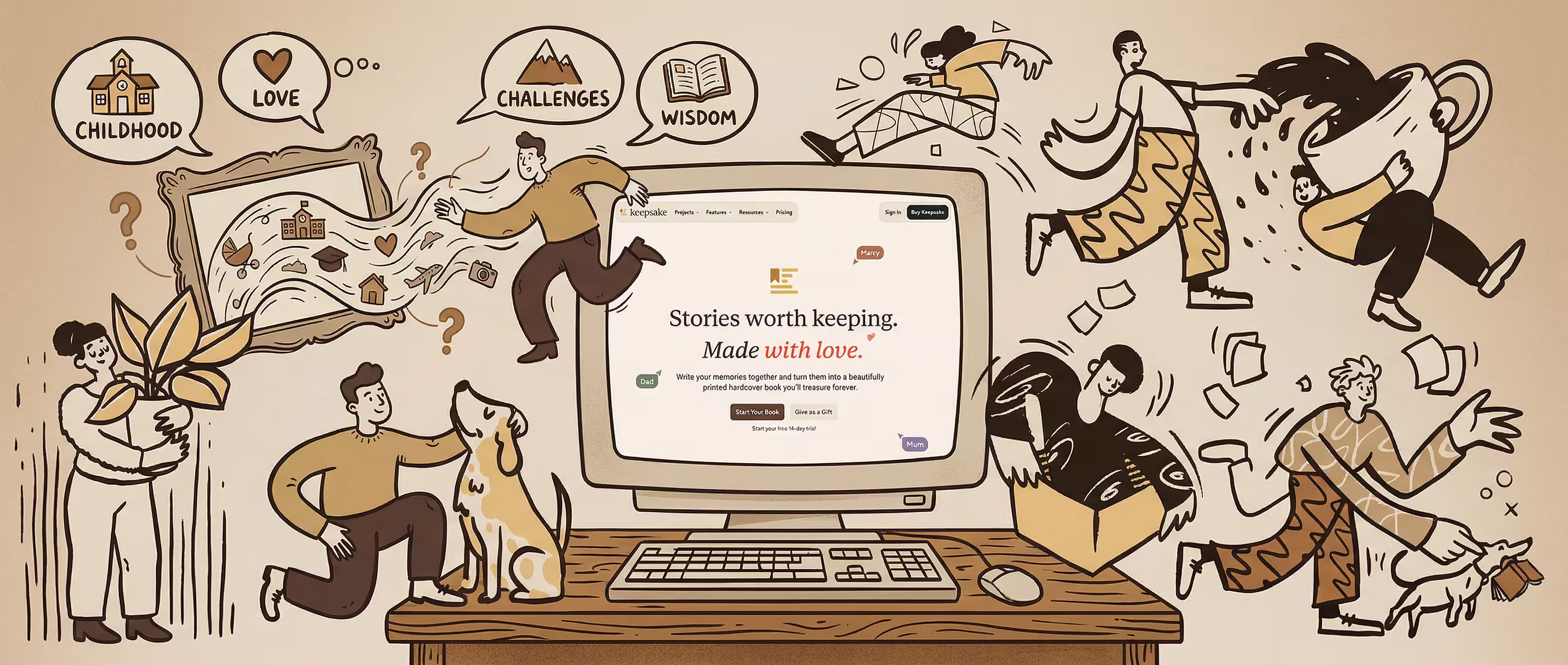Keepsake's memorial projects come with chapter templates designed for exactly this. They give you a starting framework you can customise based on who the person was and what mattered most about their life. It's easy to create a structure that feels personal rather than generic.
