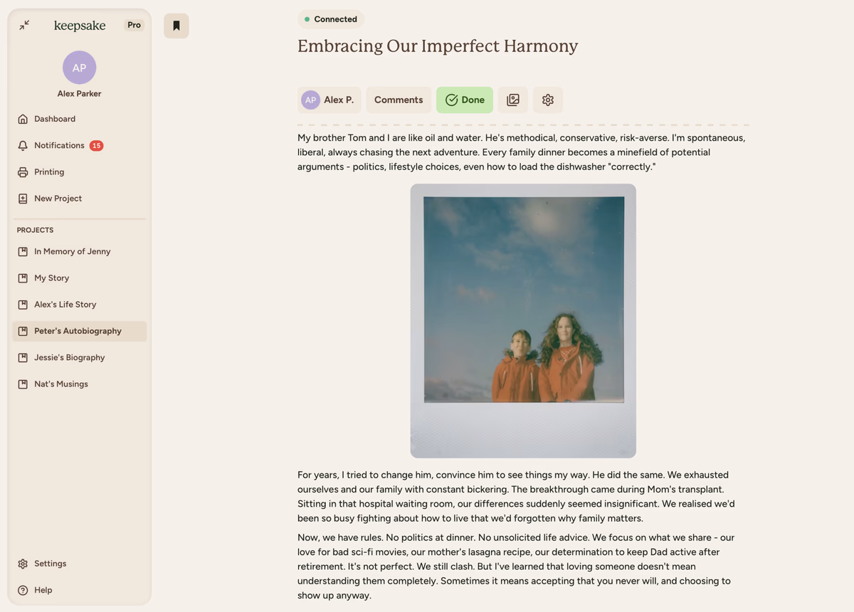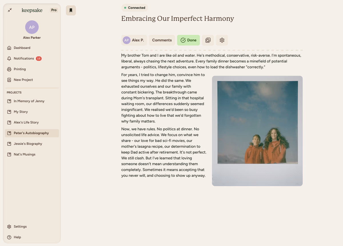 If you need more assistance with this topic please contact support at support@keepsakeproject.co.
